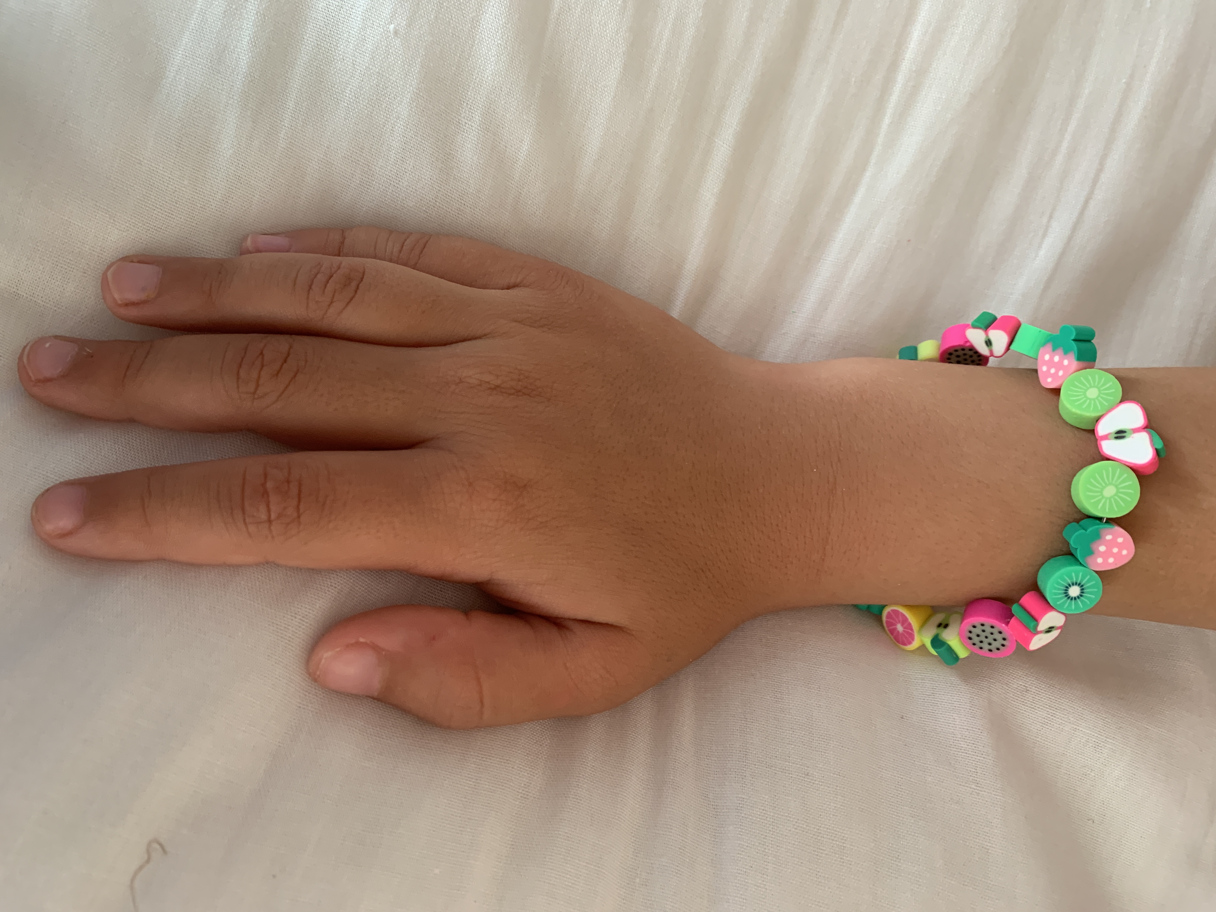 In a brand new range of bright beads for colourful kids, so far, I’ve created Fruit Salad bracelets, Cute Flower bracelet, and Pink Fruit Salad set.