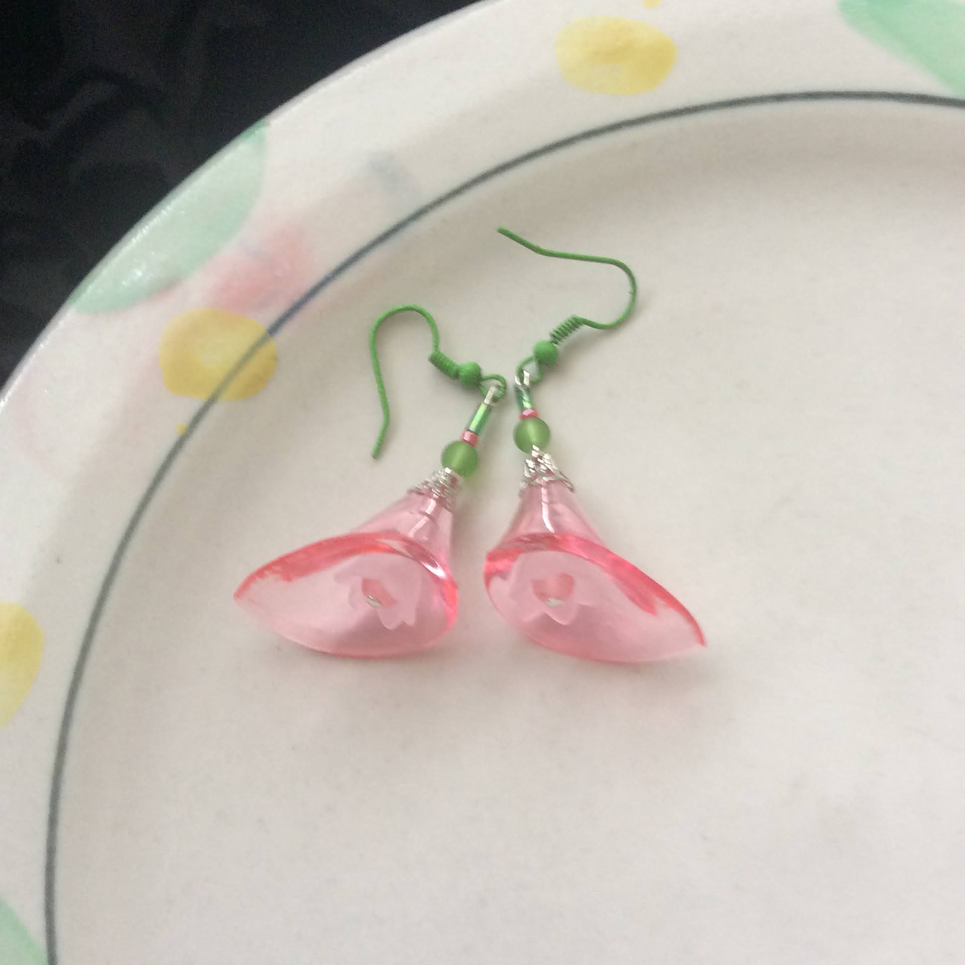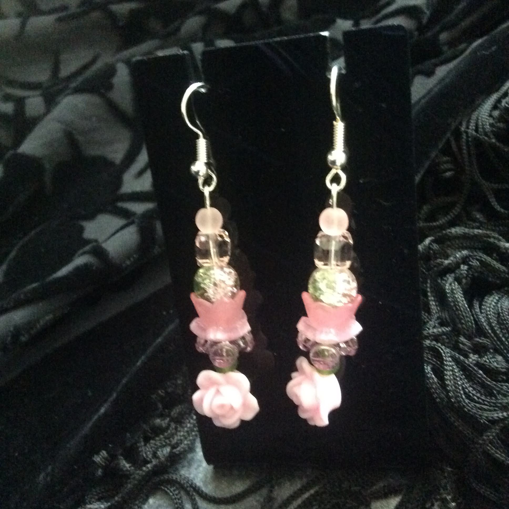 Made especially for an Artisan Craft Market, so I’ll have new stock to display as well as jewellery made earlier in the year, these two pretty little “Spring Spray” pairs, plus a couple of others in pastel shades: