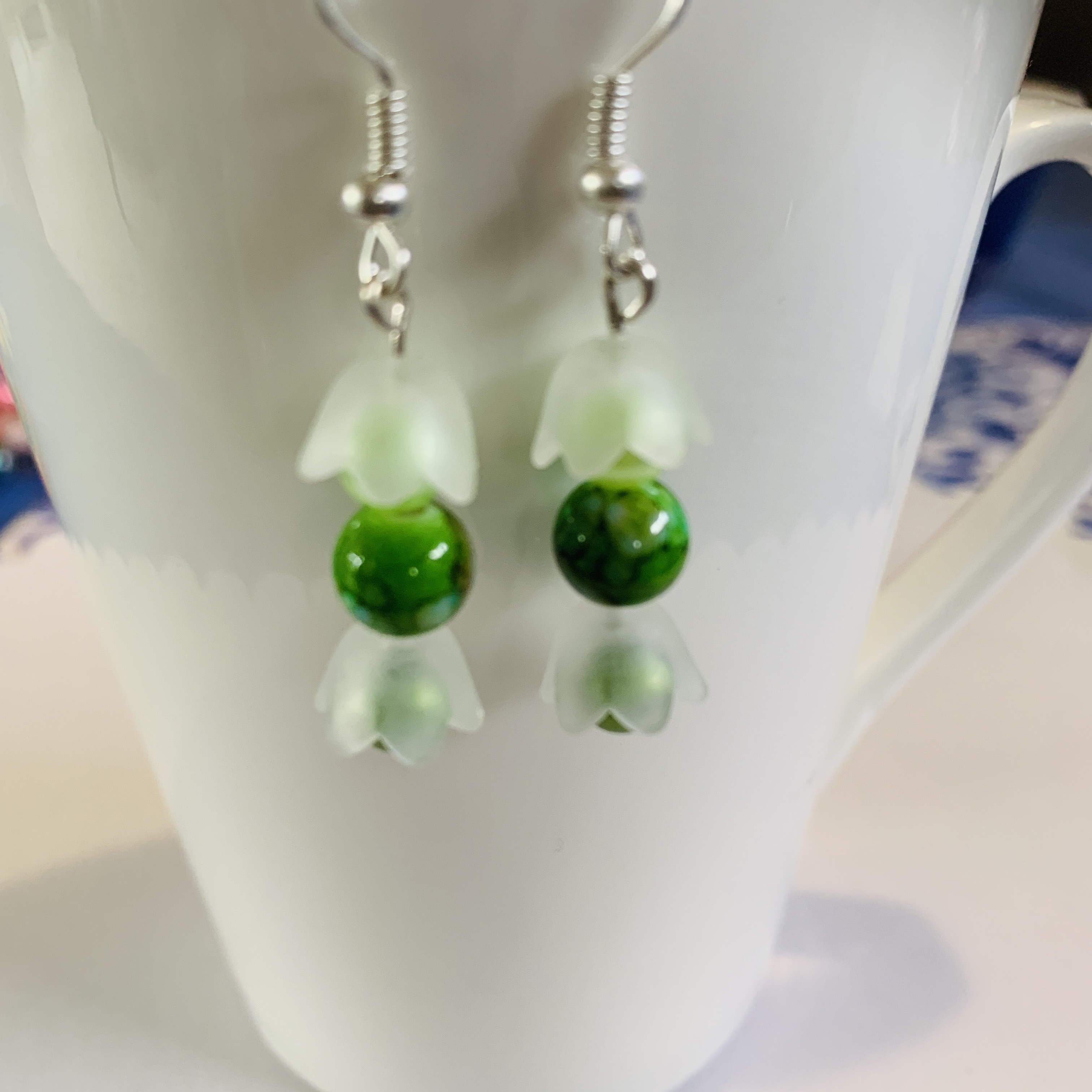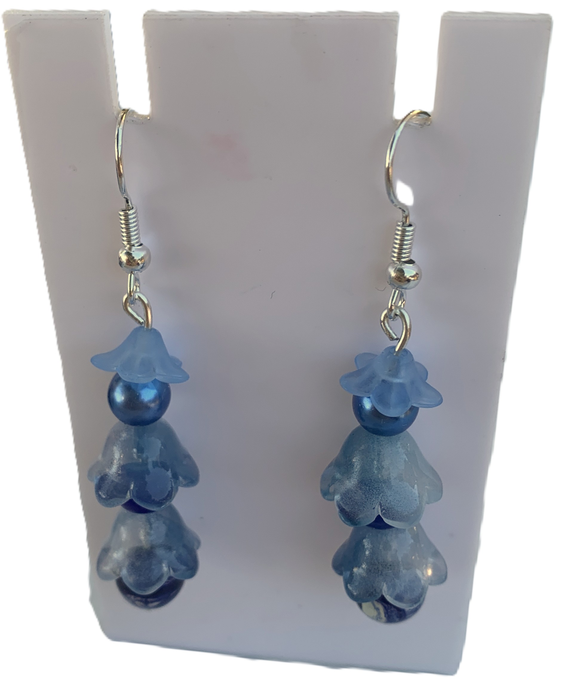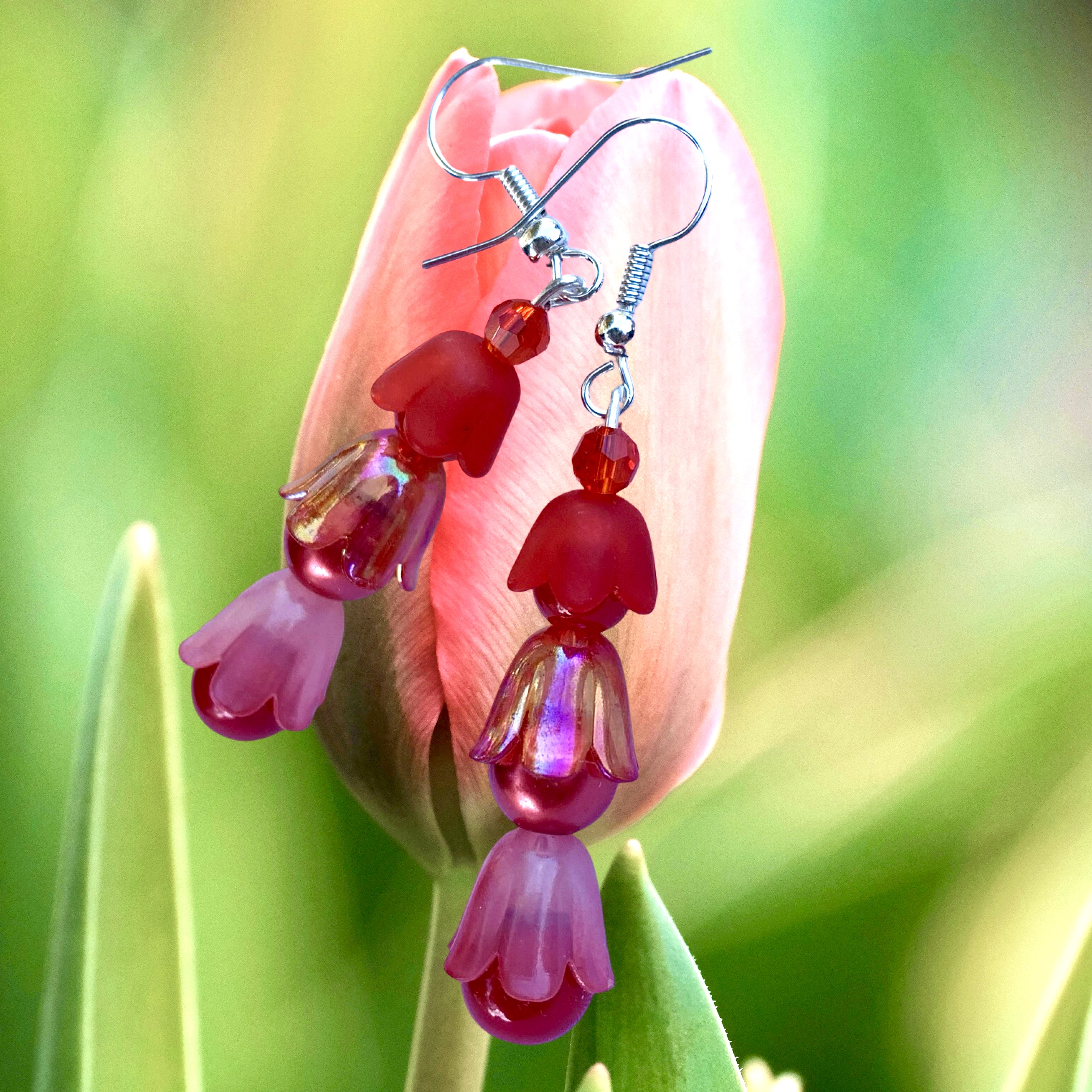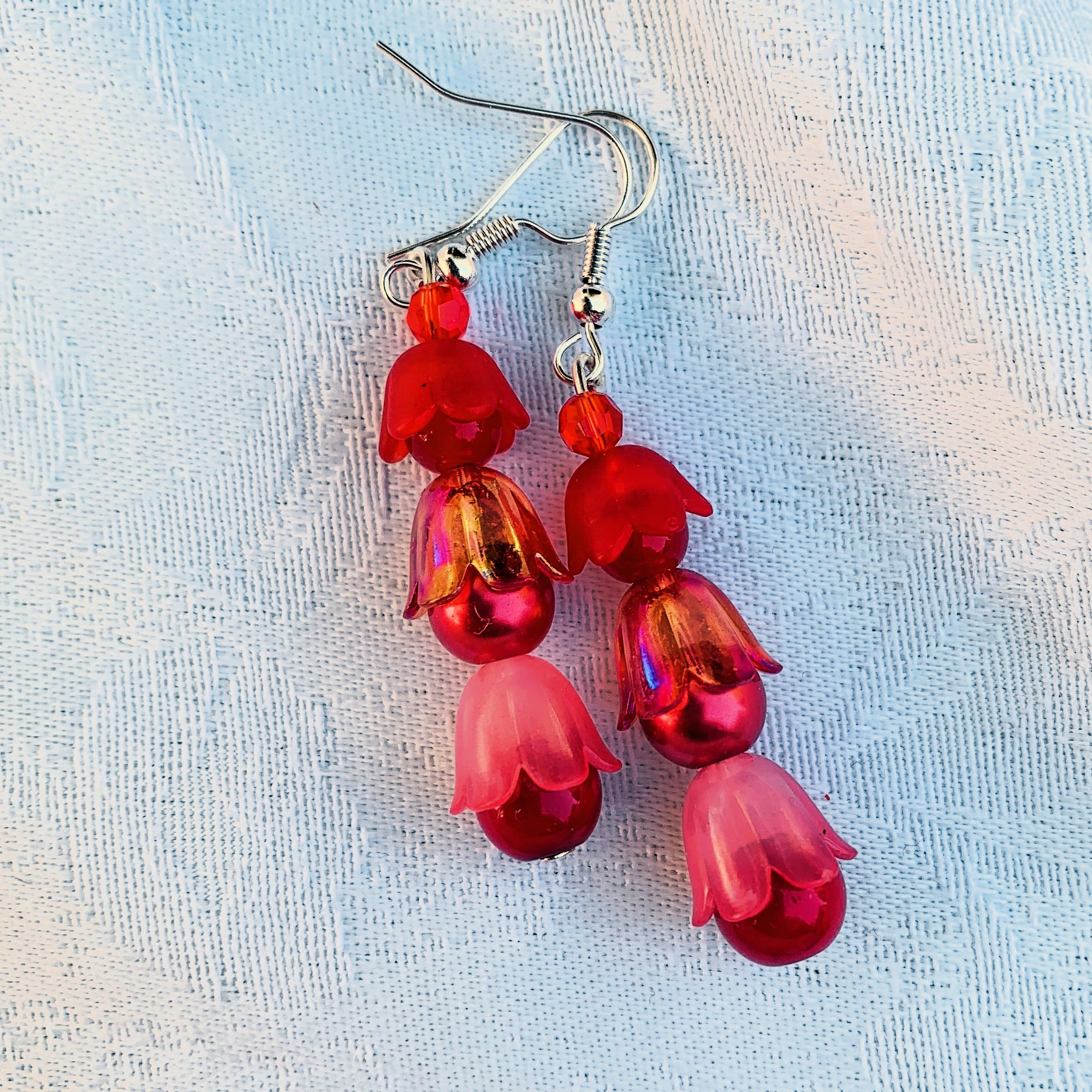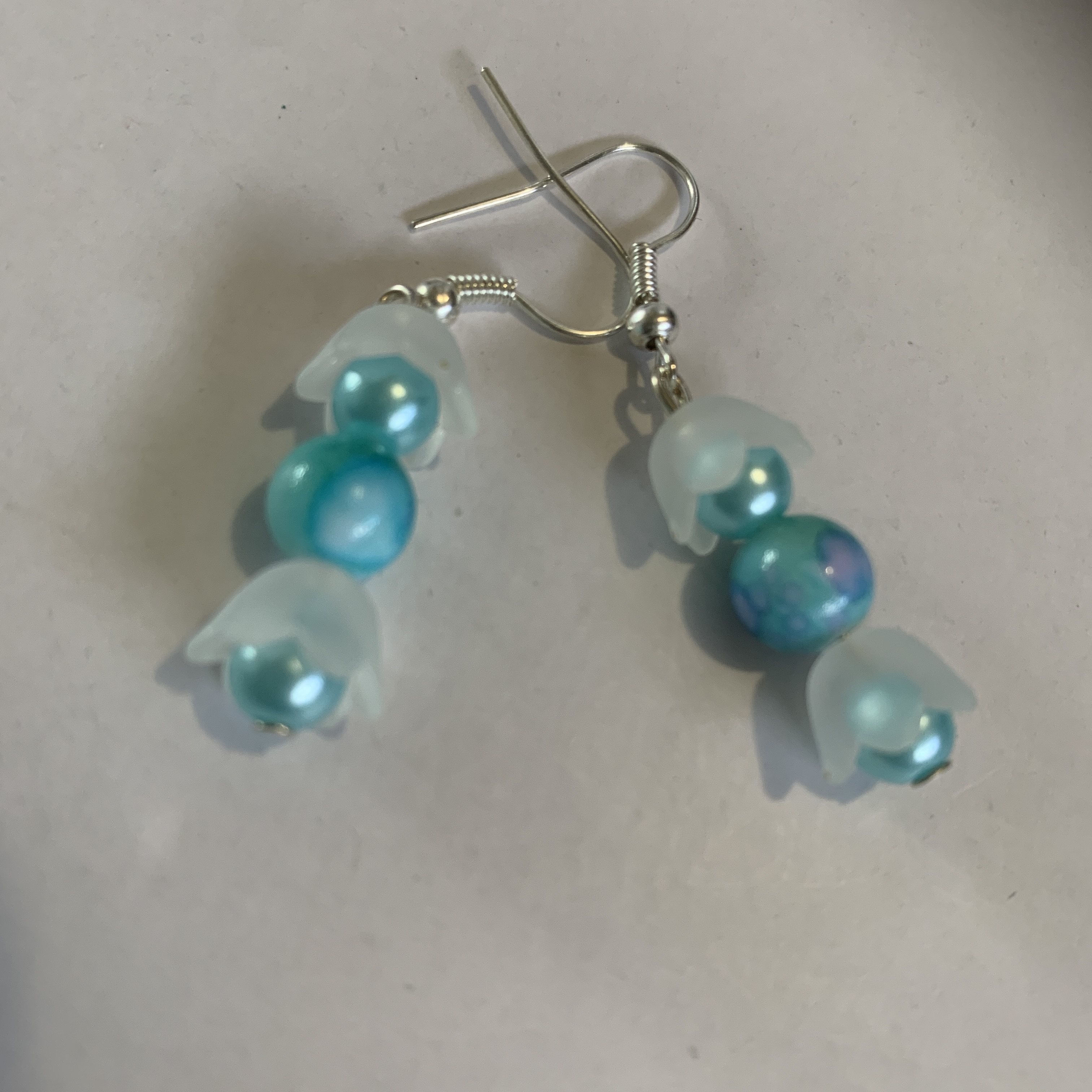 Very similar to “Flower Girl” earrings, these include or are completely made with larger beads, nestled in flower caps.