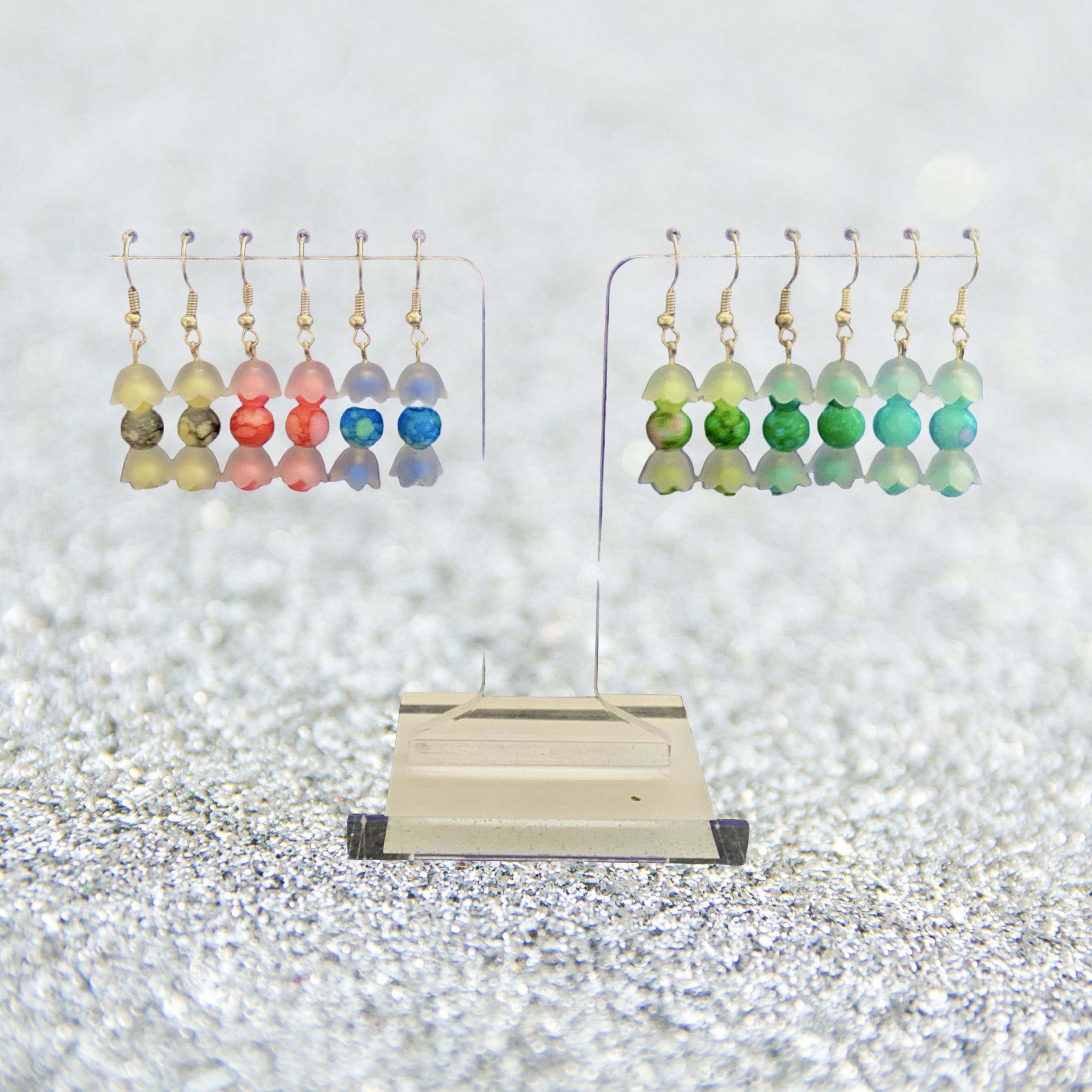 Large Glass and Mottled Stone Bead Flower Cap earrings:
