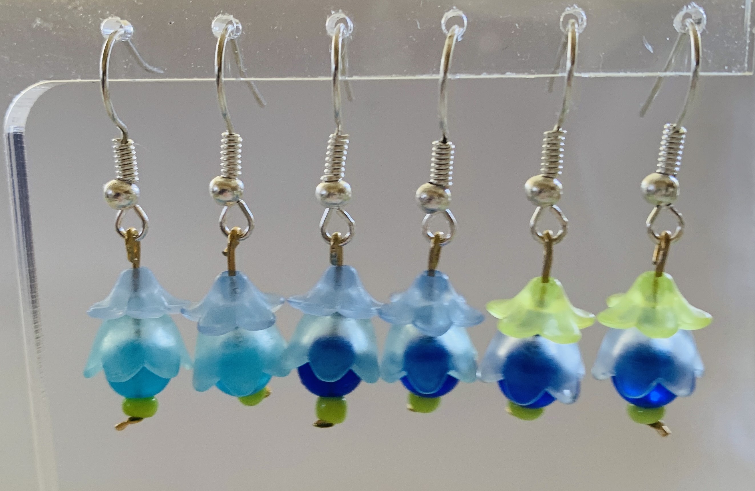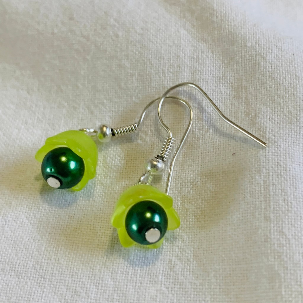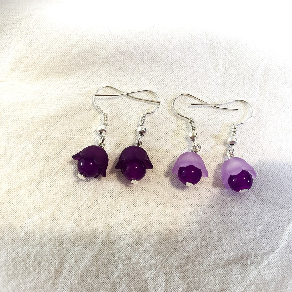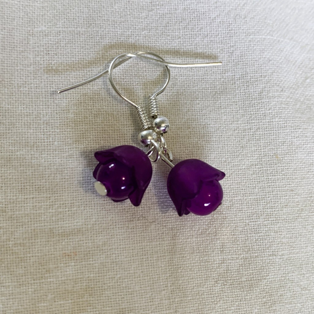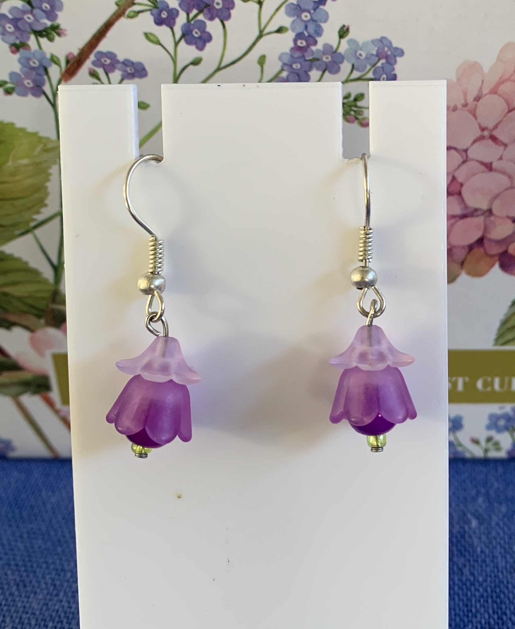 Single drop, short stem, pretty little flower earrings – single flower buds and clusters: