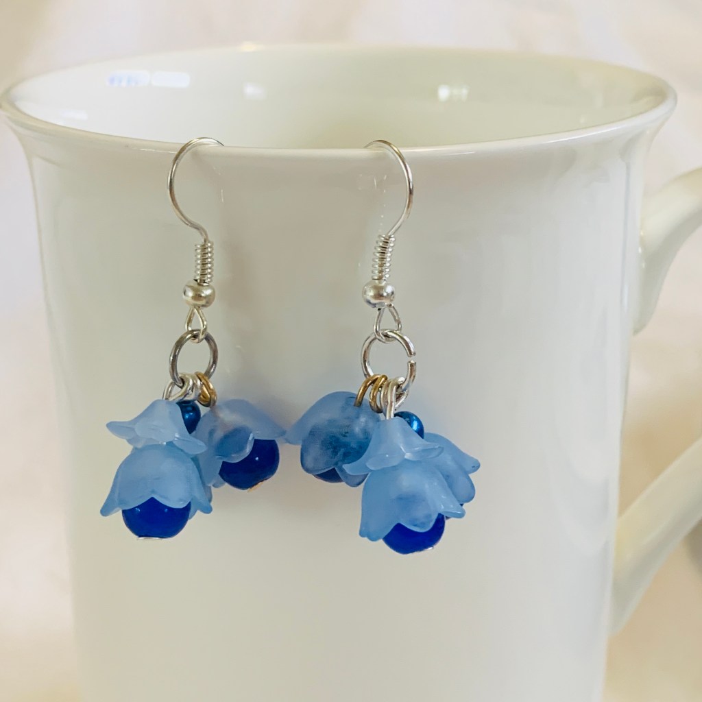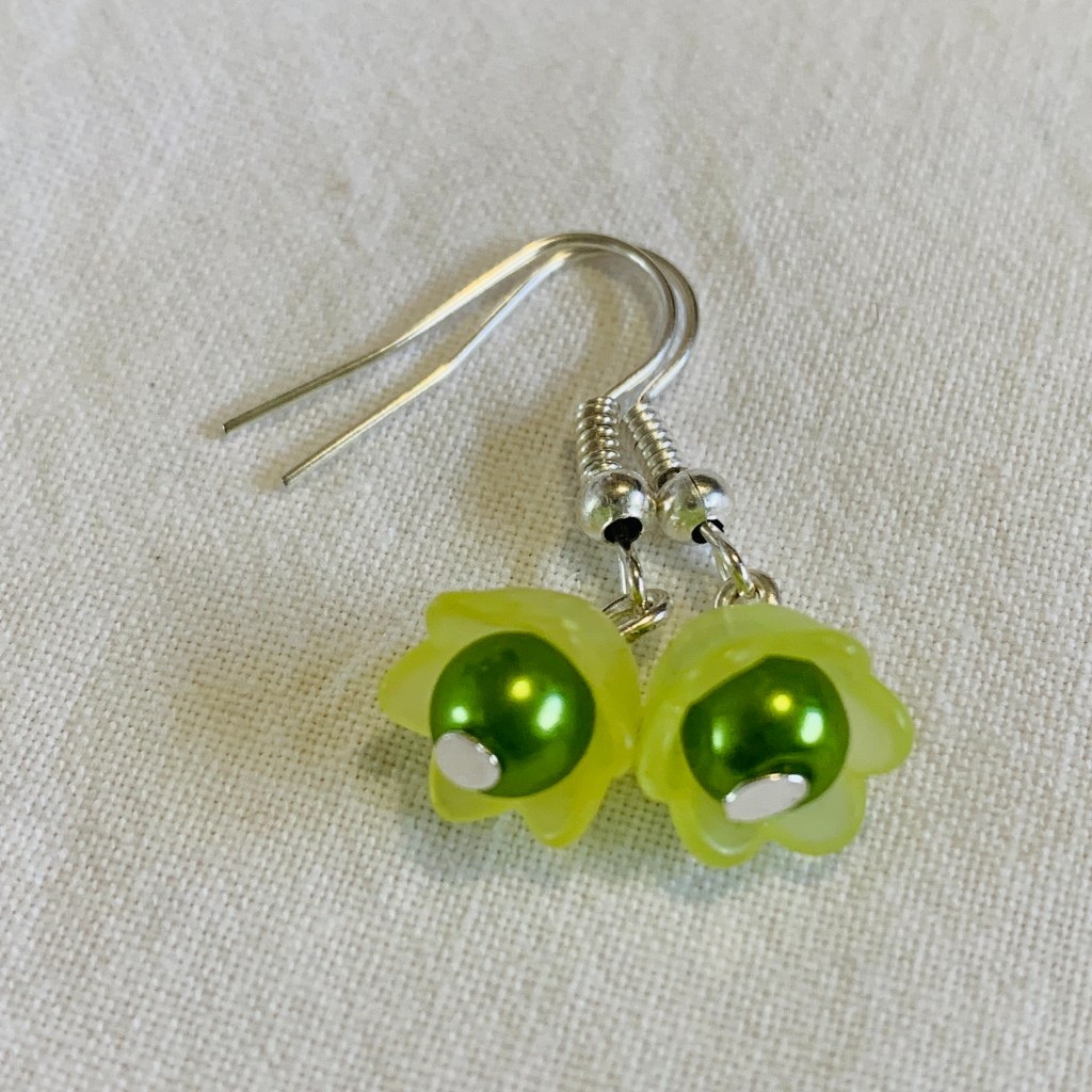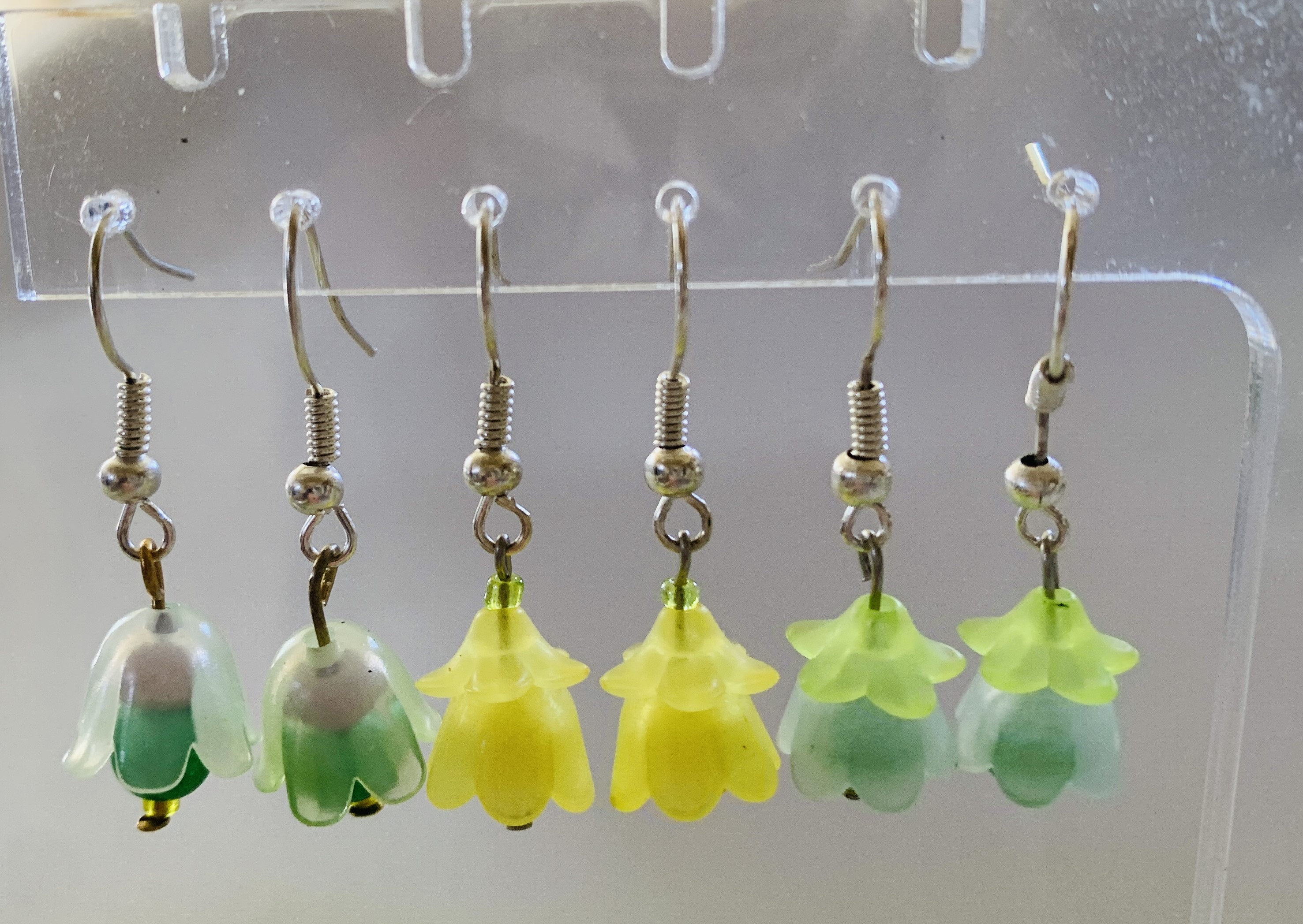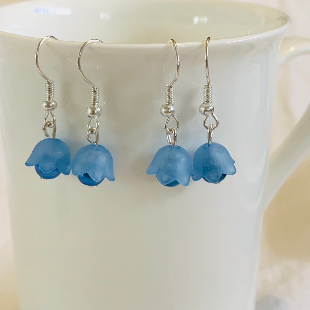 Single drop, short stem, pretty little flower earrings – single flower buds and clusters: