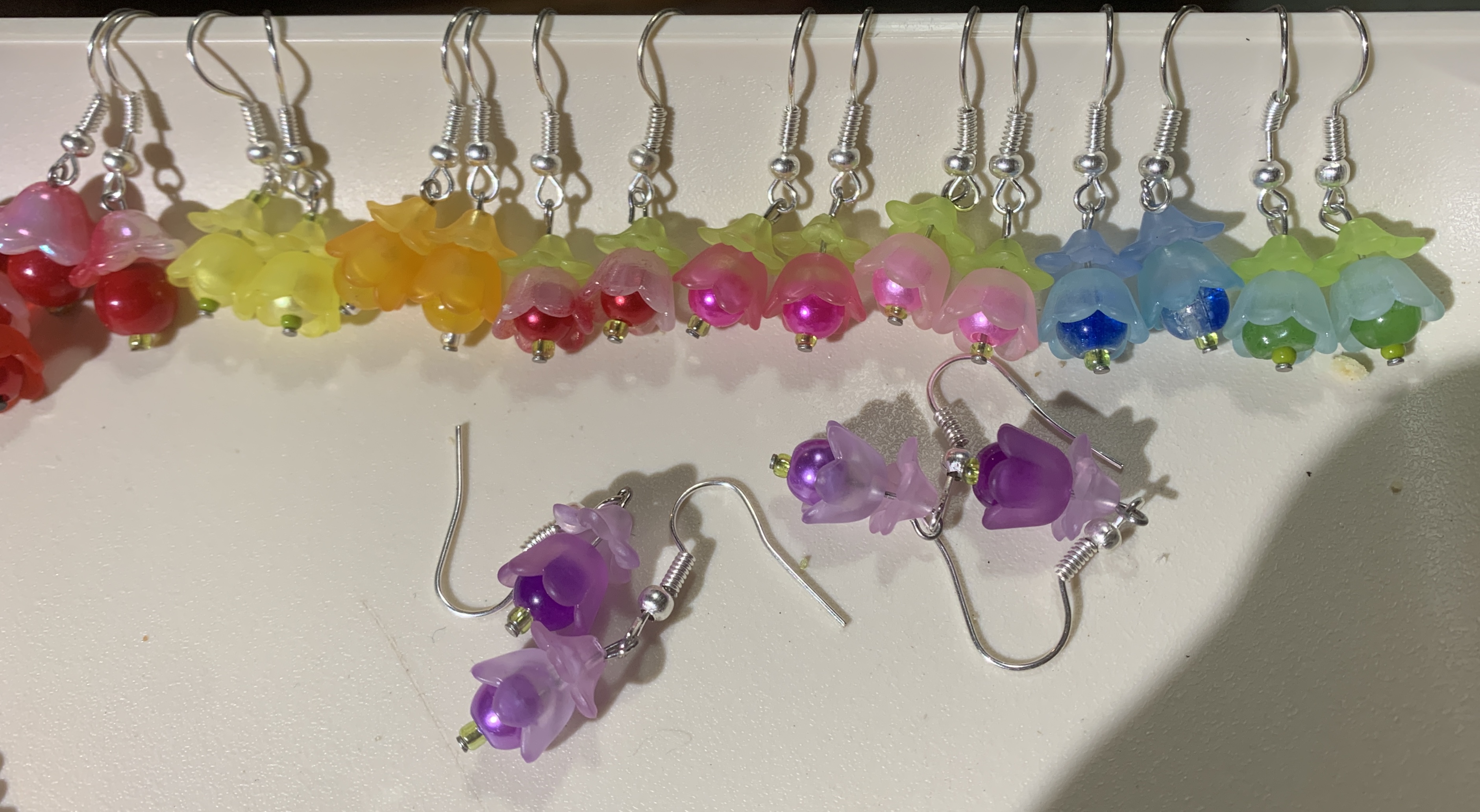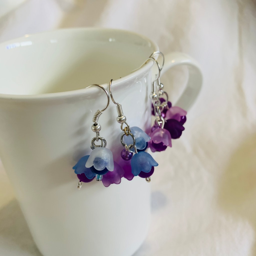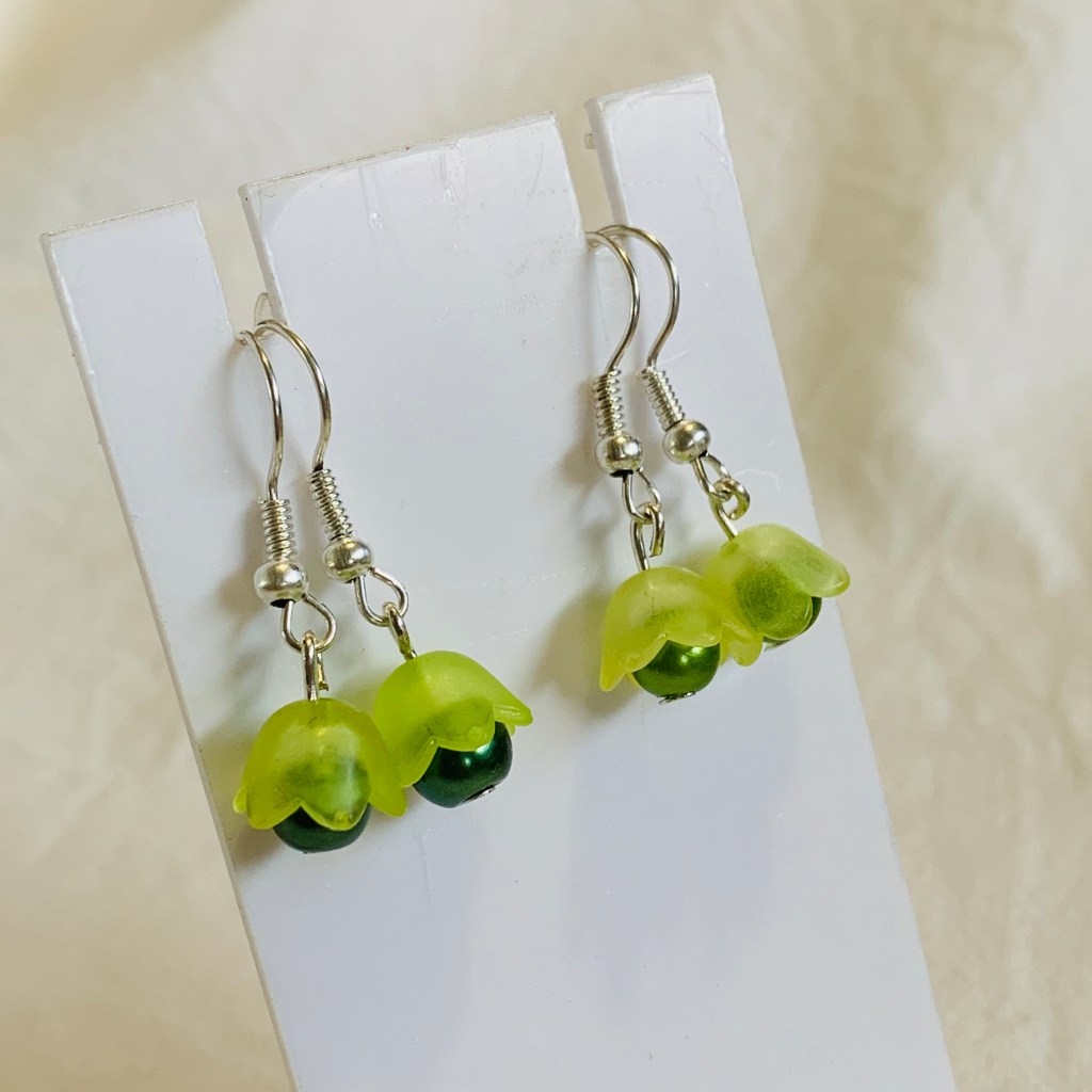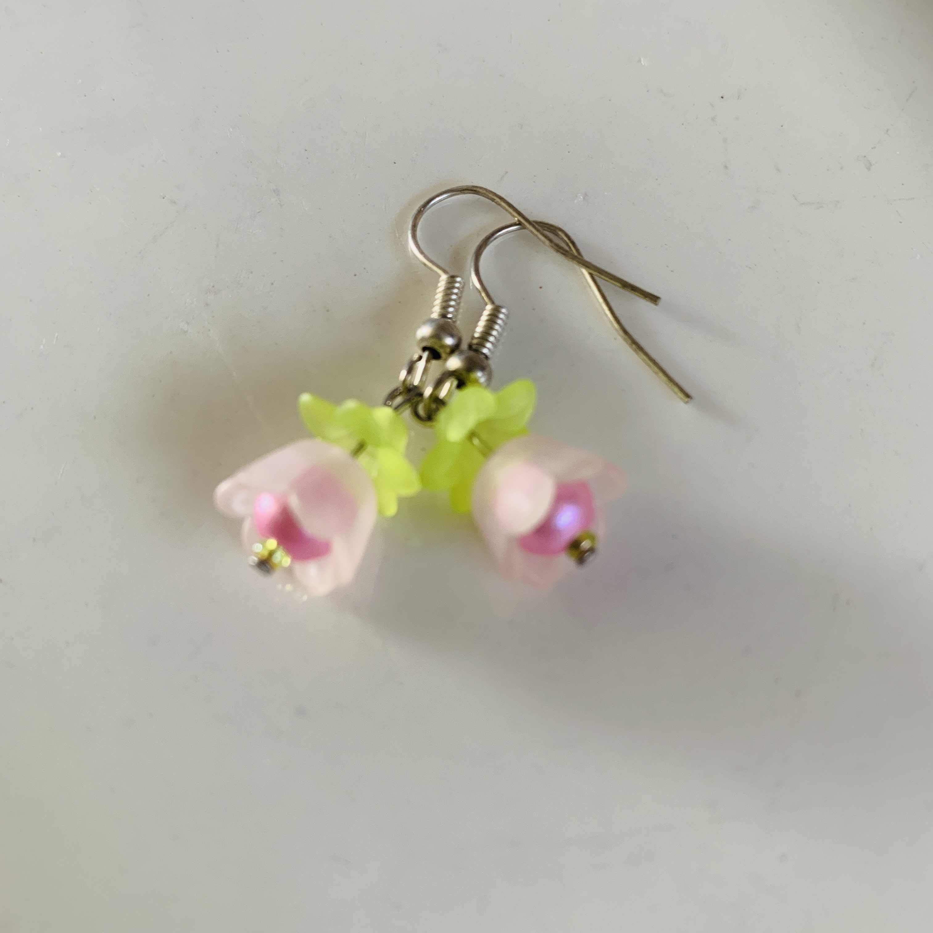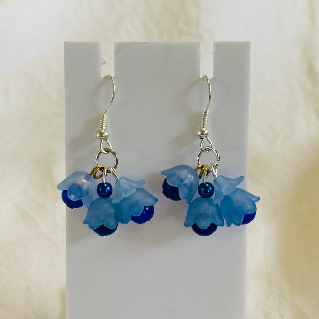 Single drop, short stem, pretty little flower earrings – single flower buds and clusters: