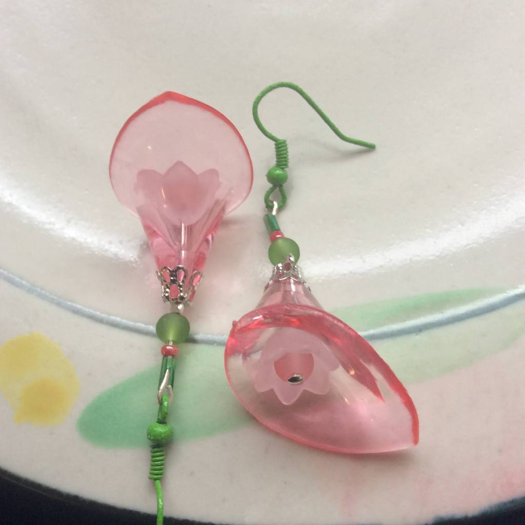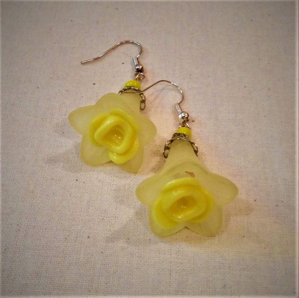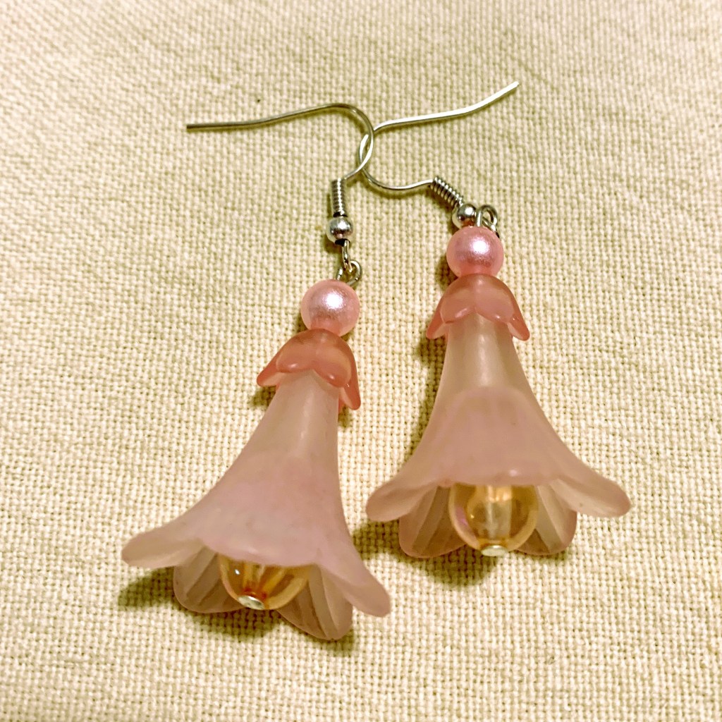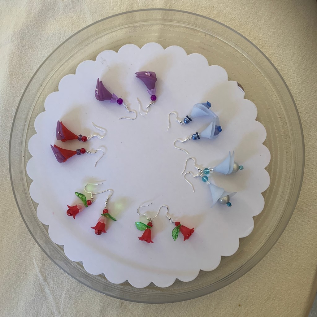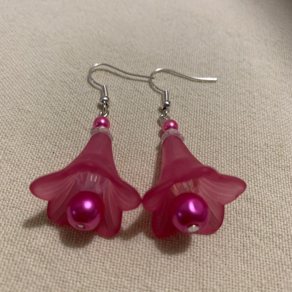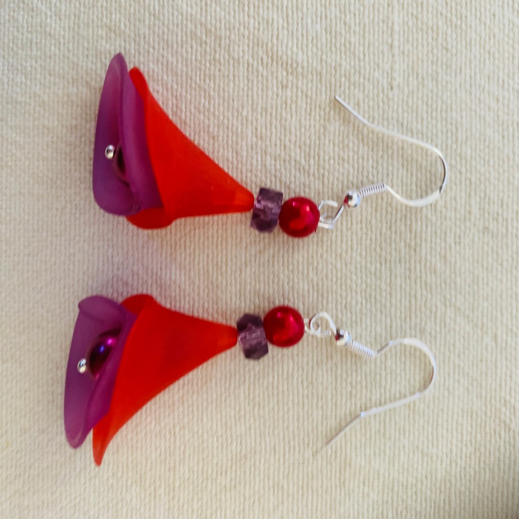 New in 2022: big lucite flower beads: Most of the earrings and necklaces below have been sold or taken out of stock.