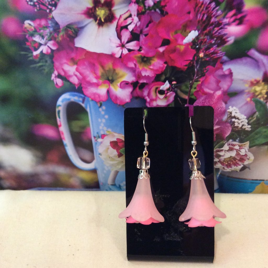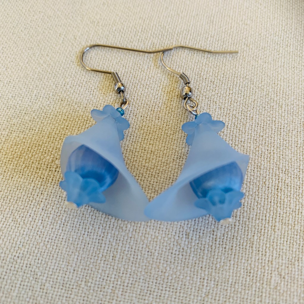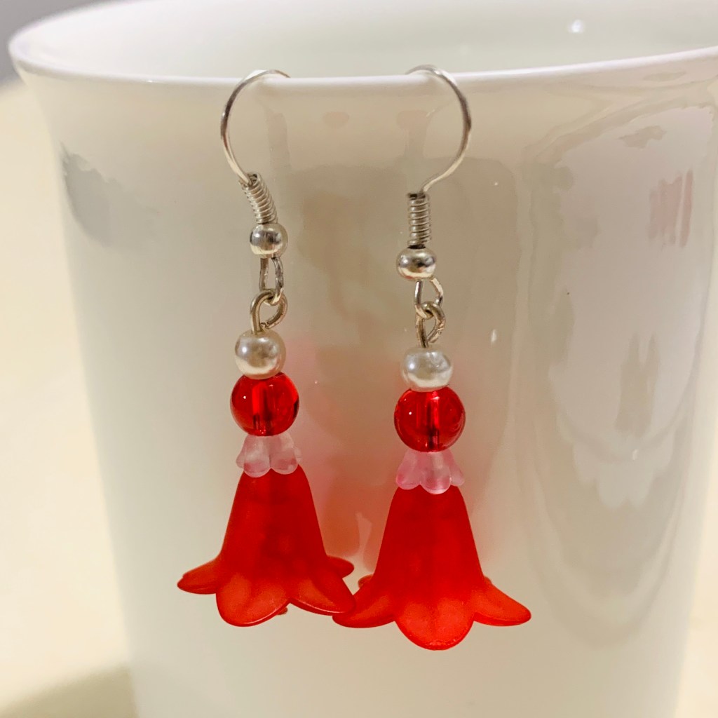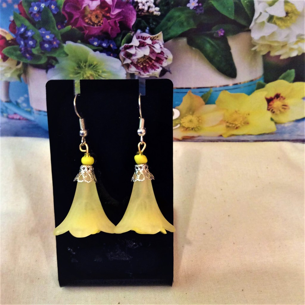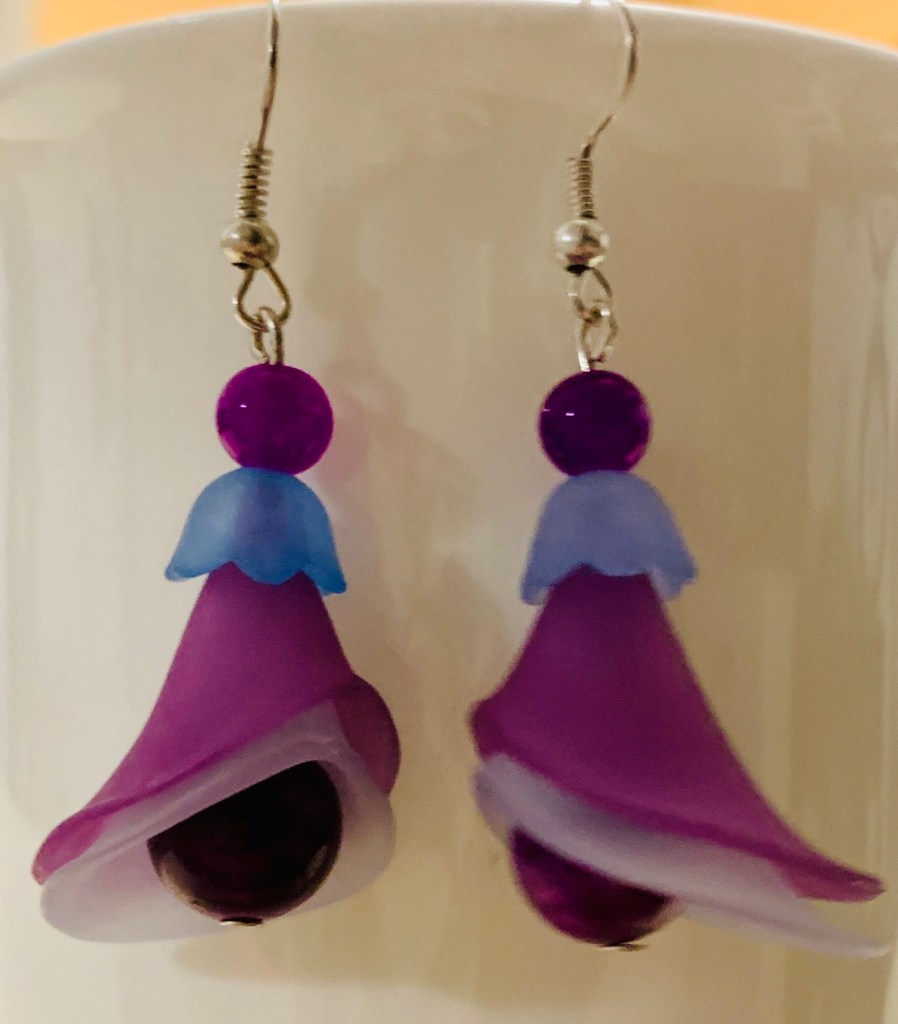 New in 2022: big lucite flower beads: Most of the earrings and necklaces below have been sold or taken out of stock.