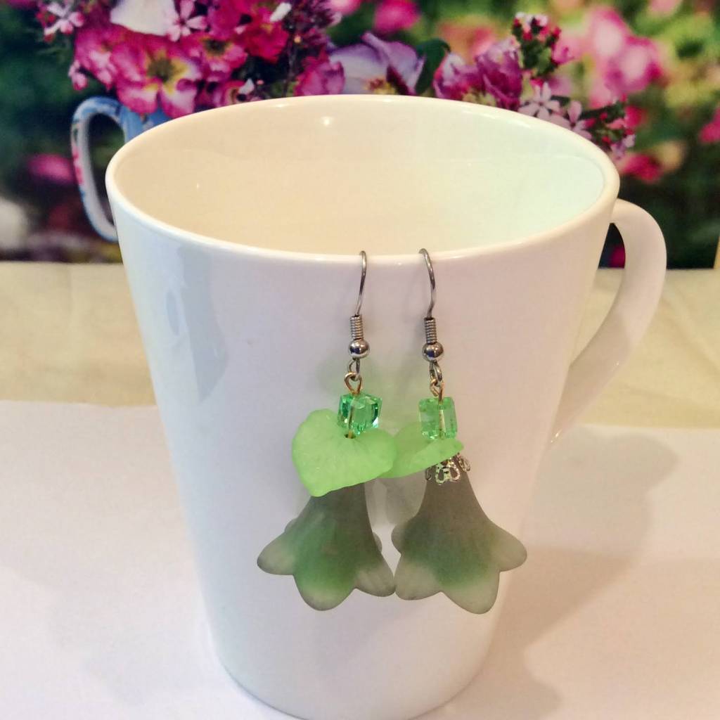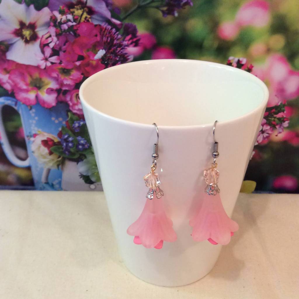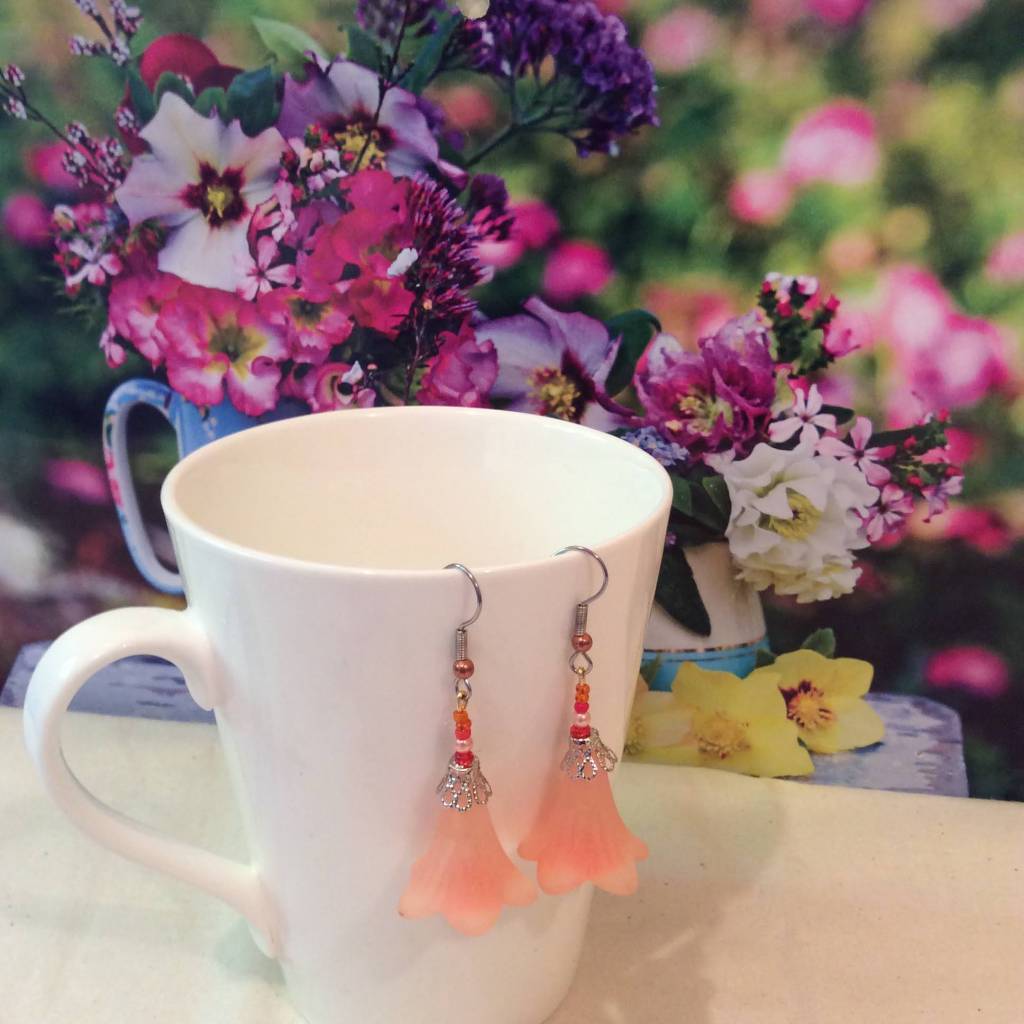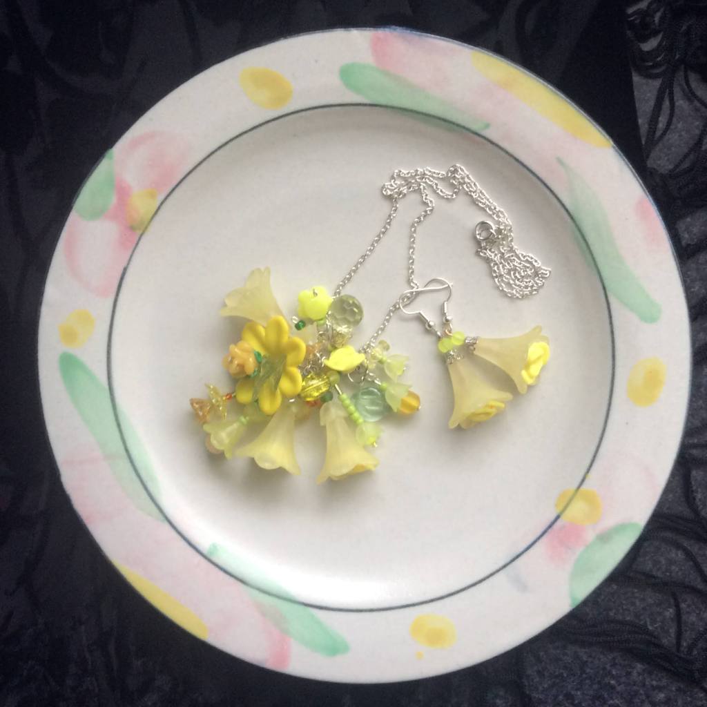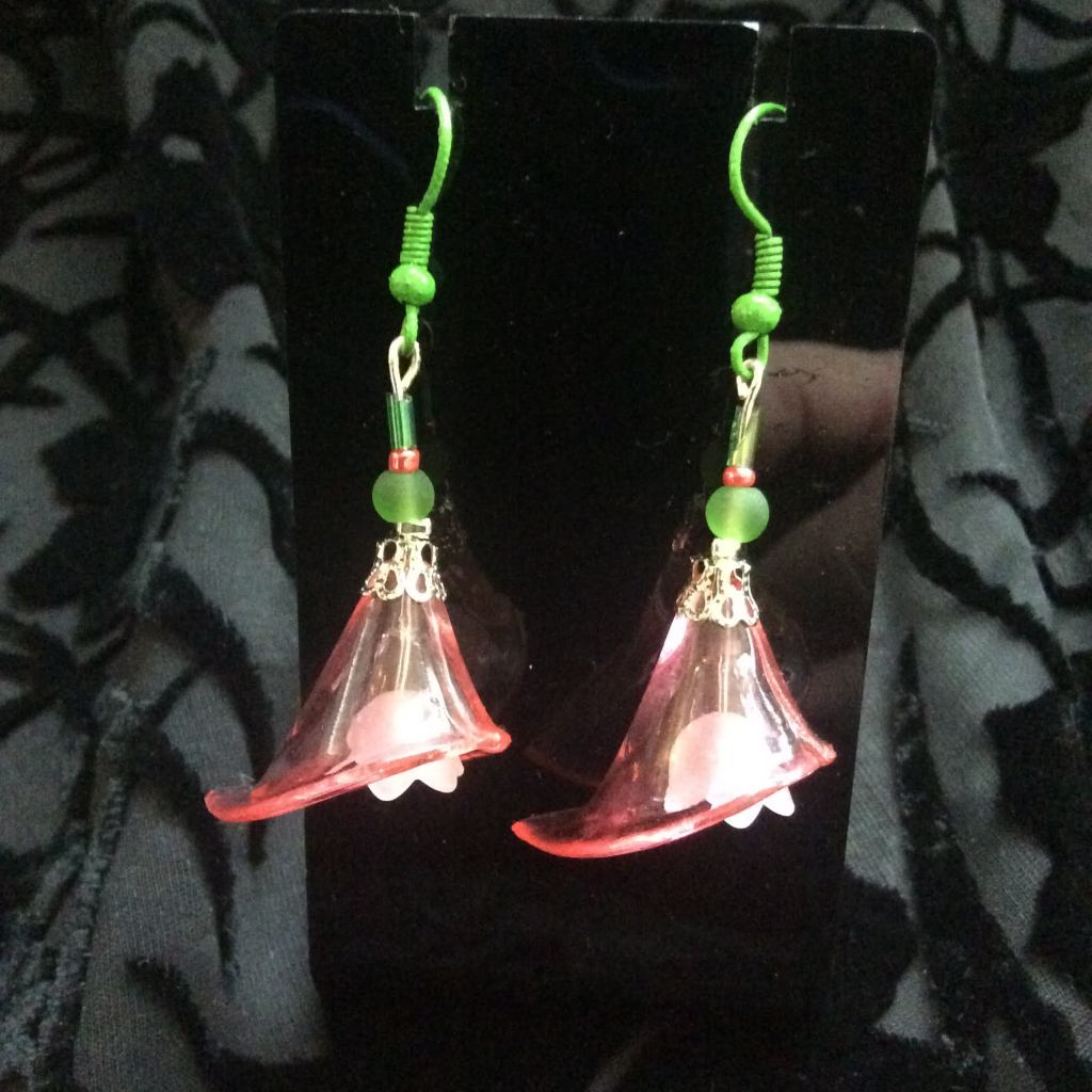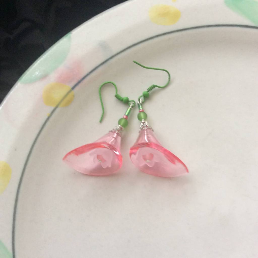 New in 2022: big lucite flower beads: Most of the earrings and necklaces below have been sold or taken out of stock.